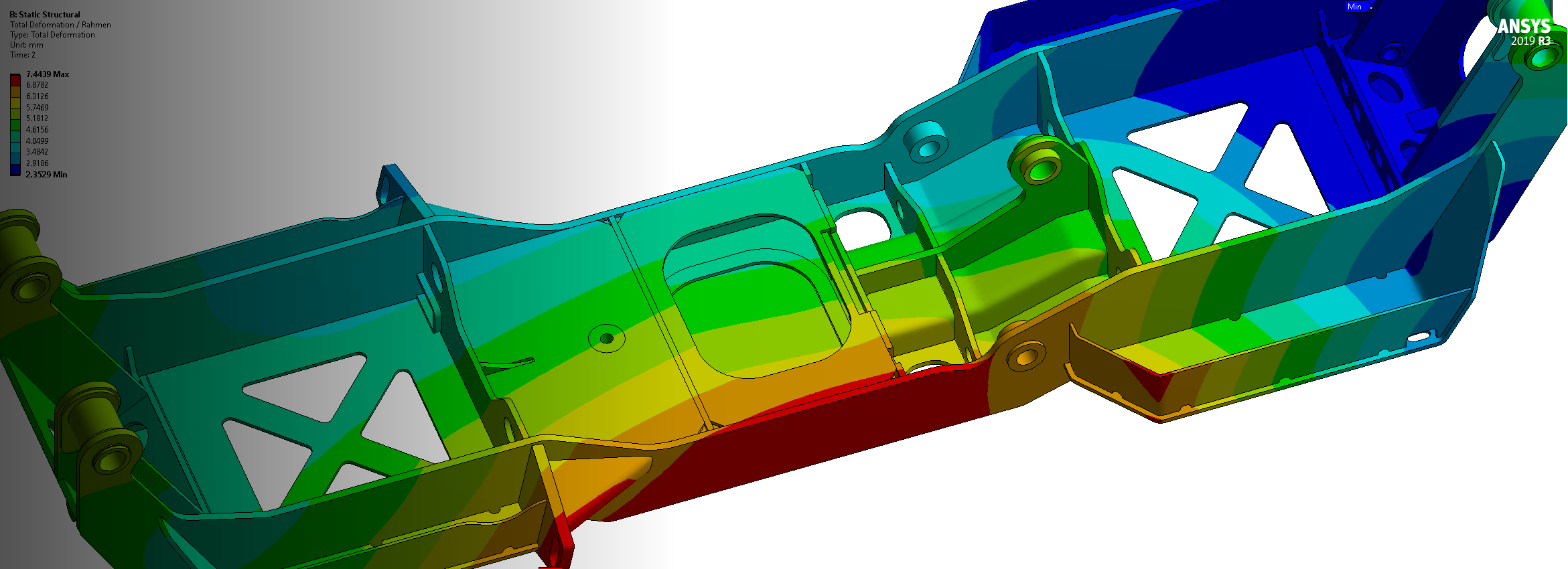 Das numerische Verfahren der Finite Elemente Methode (FEM) ermöglicht eine frühzeitige rechnerische Untersuchung von Konstruktionsvarianten noch bevor die Bauteile in die Herstellung über gehen. Eventuelle Schwachstellen werden erkannt und können mit geometrischen Änderungen sehr effektiv und kostengünstig behoben werden. Dies spart Zeit und Geld. Bei der Untersuchung von Schwachstellen mit nachfolgender Lösungssuche für mögliche Verbesserungen erweist sich die FEM ebenfalls als unverzichtbares Instrument. In der Siumulation setzen wir die Software ANSYS ein und verfügen mittlerweile über eine 23-jährige Erfahrung.